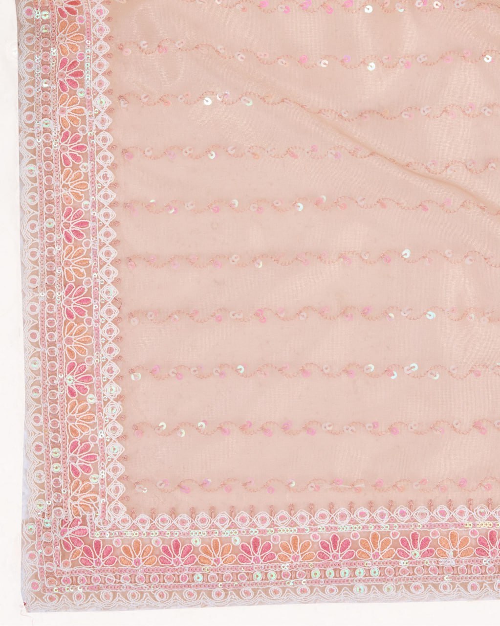 Soft Gold Net fabric with Embroider work and Multi work cut border