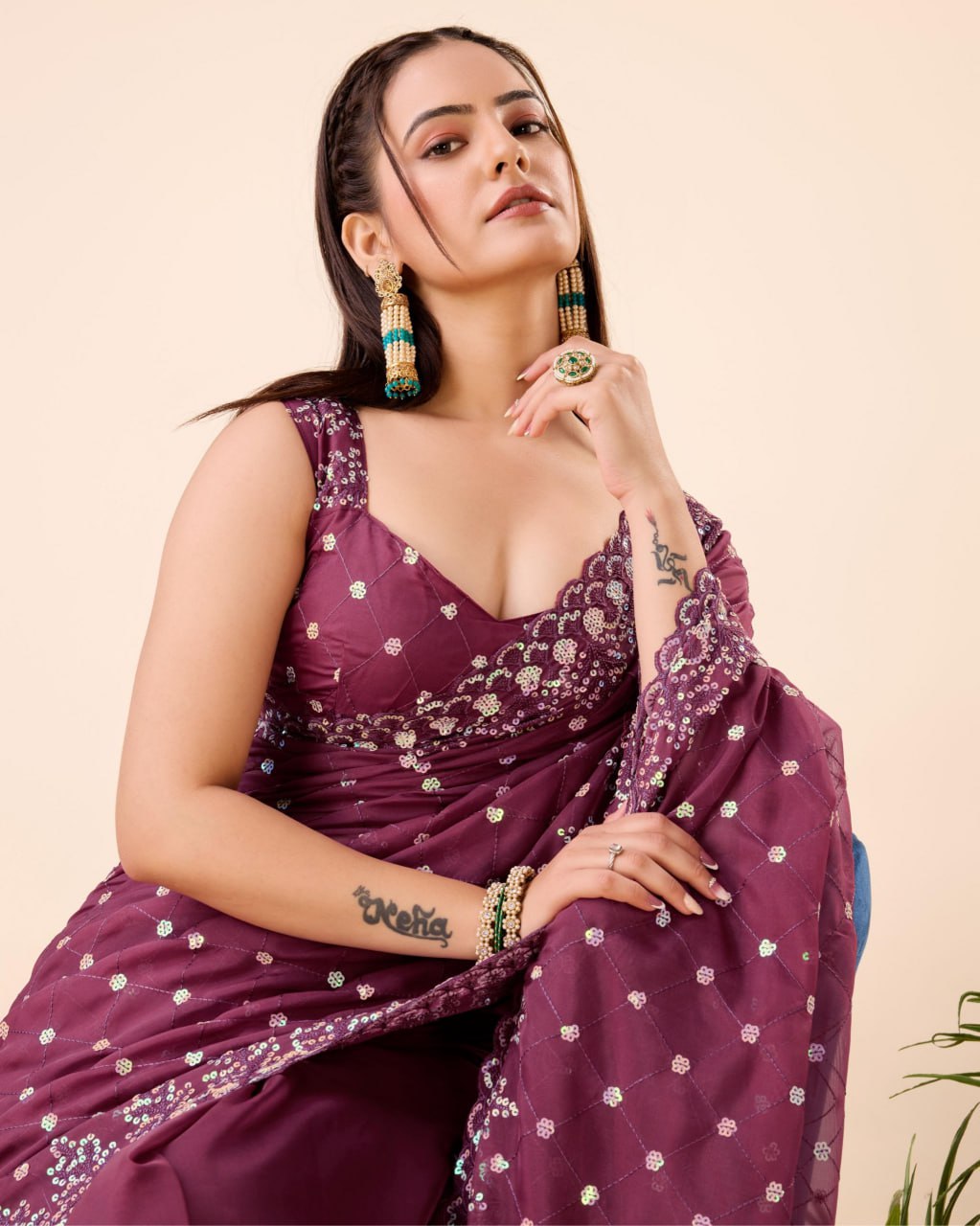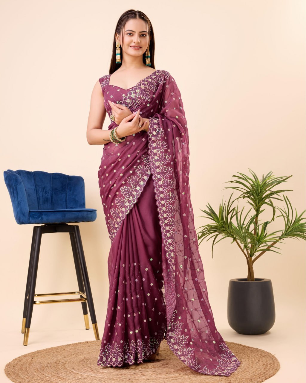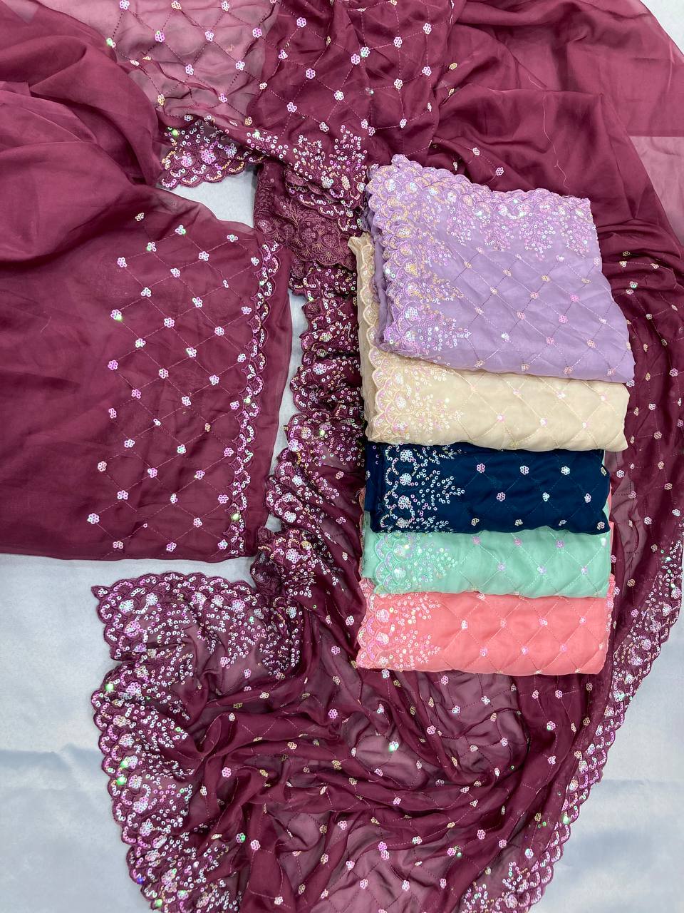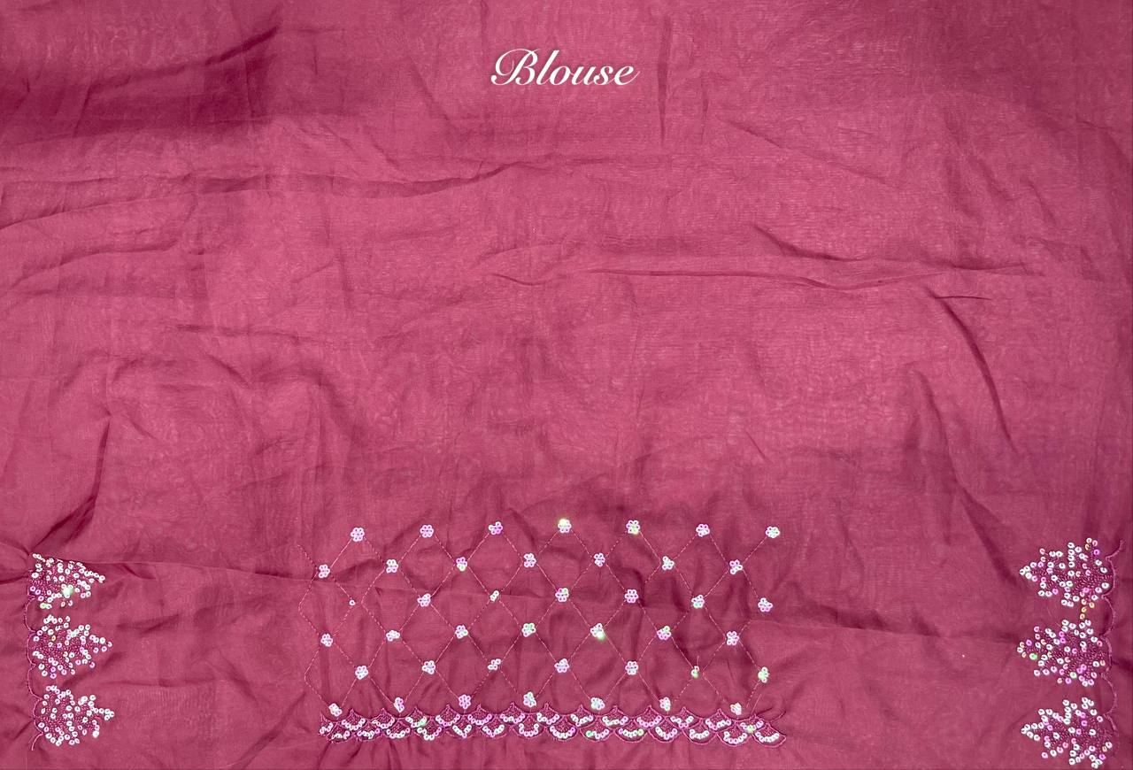 Looking some one for this same colour beautiful Saree for wedding on premium Soft Taby Silk Organza fabric with C-pallu All Over Embroidery Work Butti & piping Border and Embroidery Work blouse.