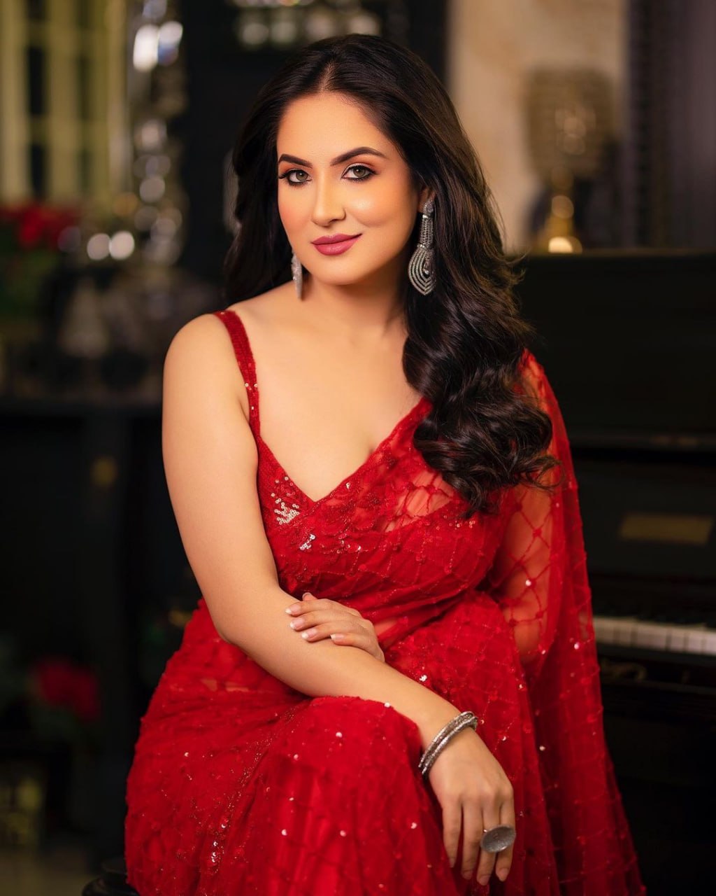 *BLOUSE :* sequins work blouse in net with tussle