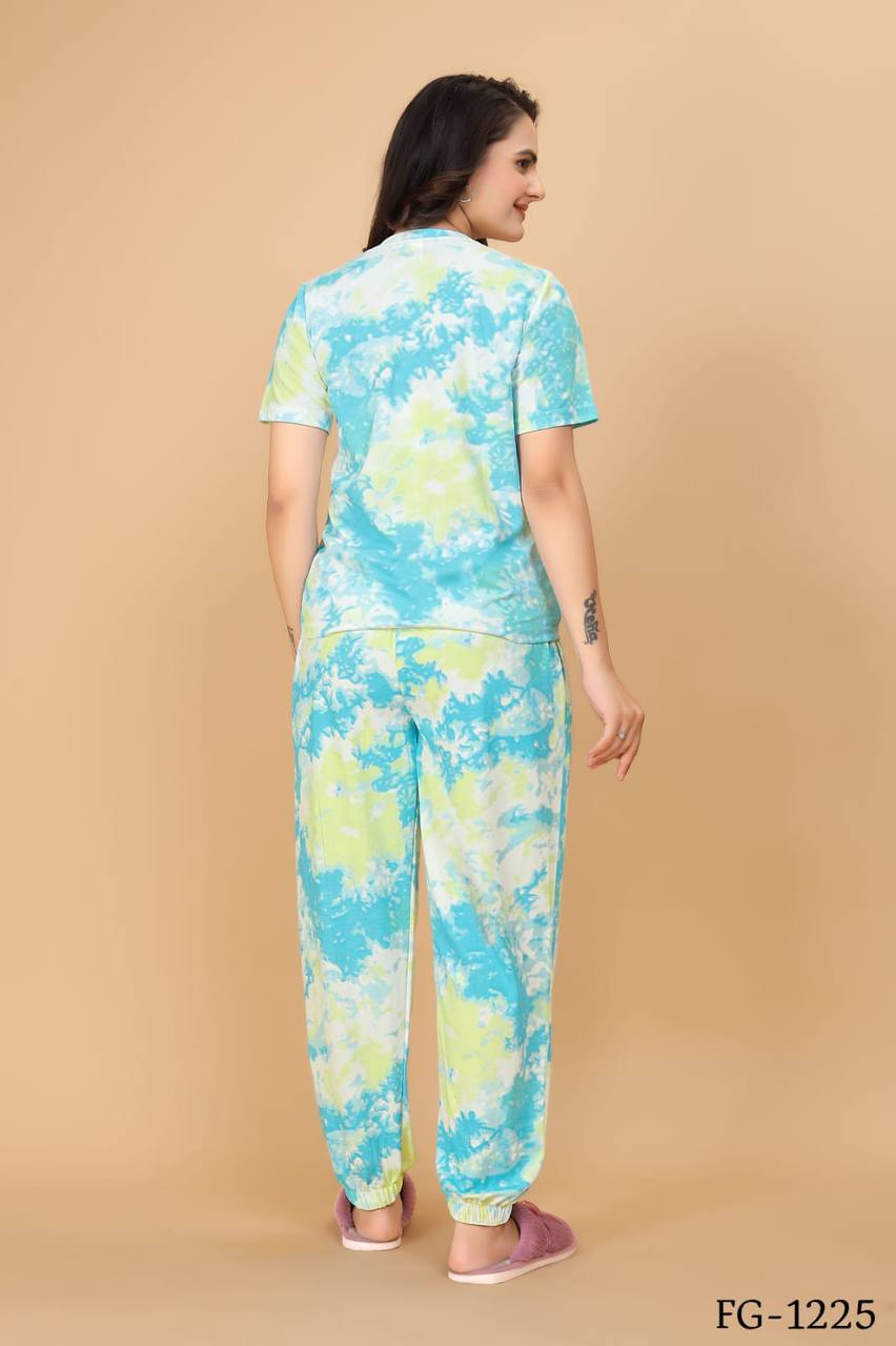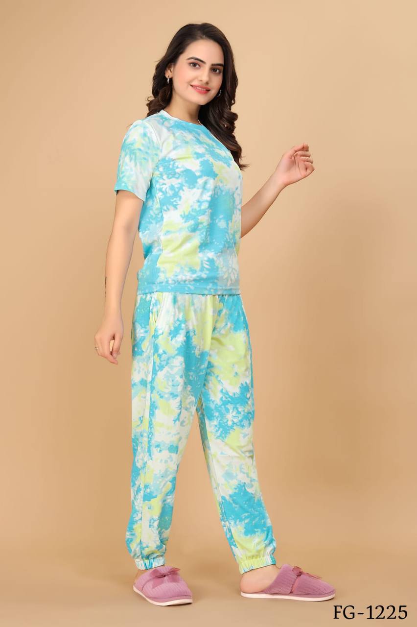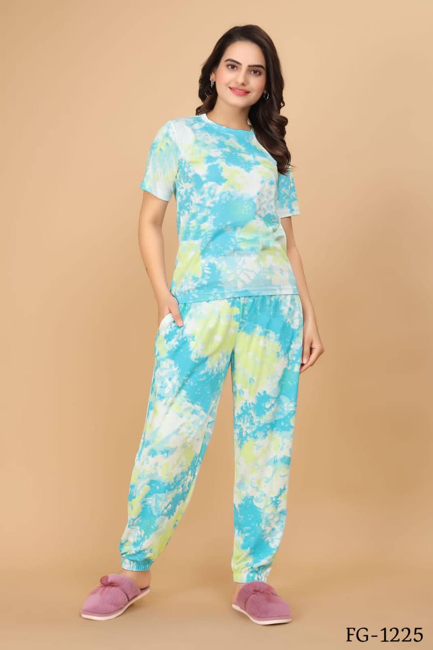 Cotton Lycra With Sibori Printed Work Night Suits
