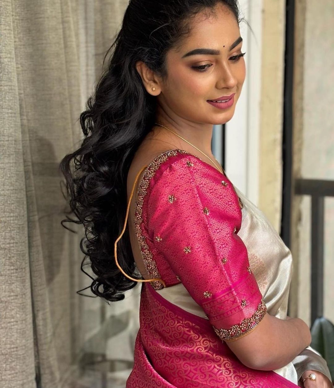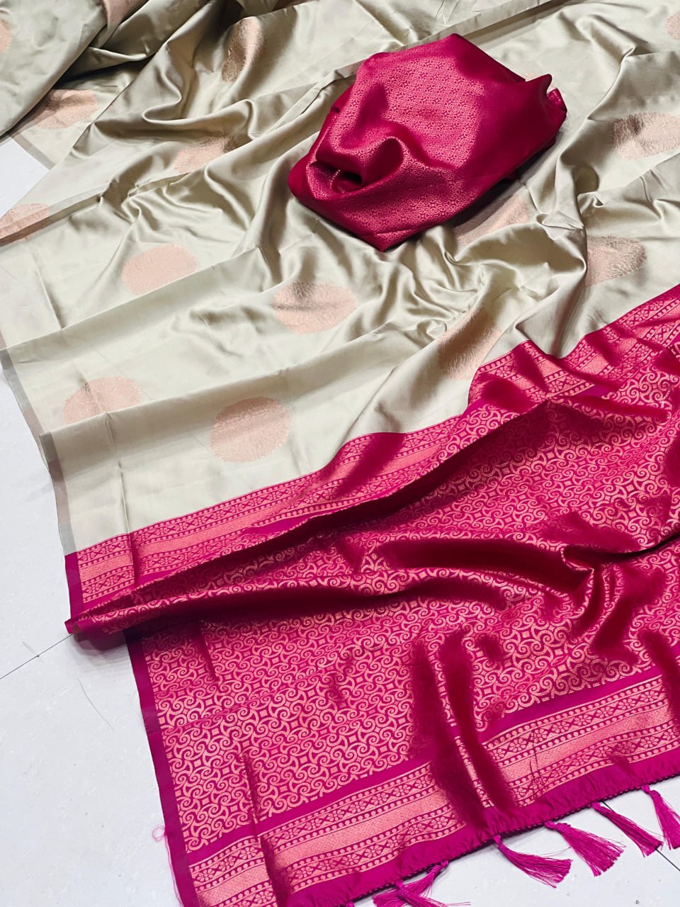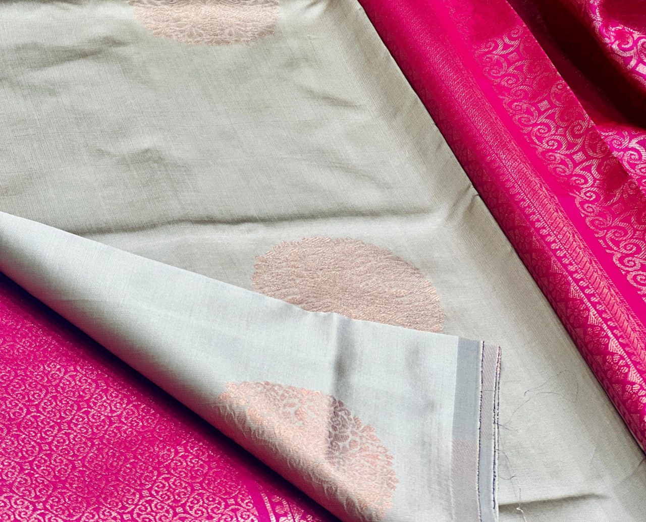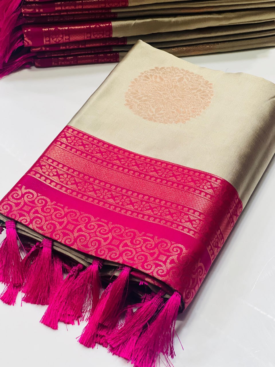 Designer banarsi handloom in kanjiavaram kubera silk concept with contrast pallu border and designer brocade blouse