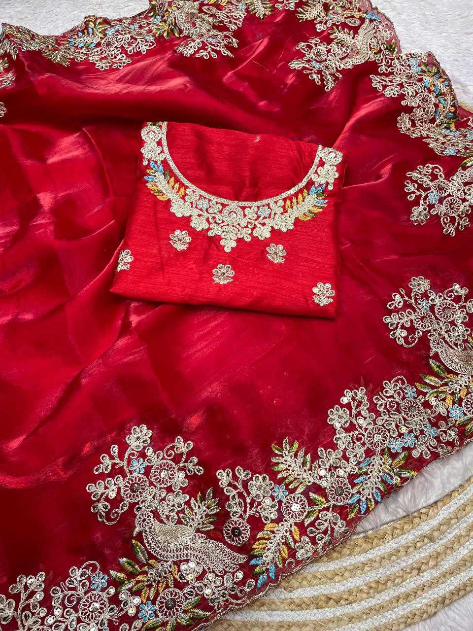 Pure Soft Jimmy Cho with Heavy Embroidery Multi Treads , Coding & Sequins Work & Fancy CutWork In saree