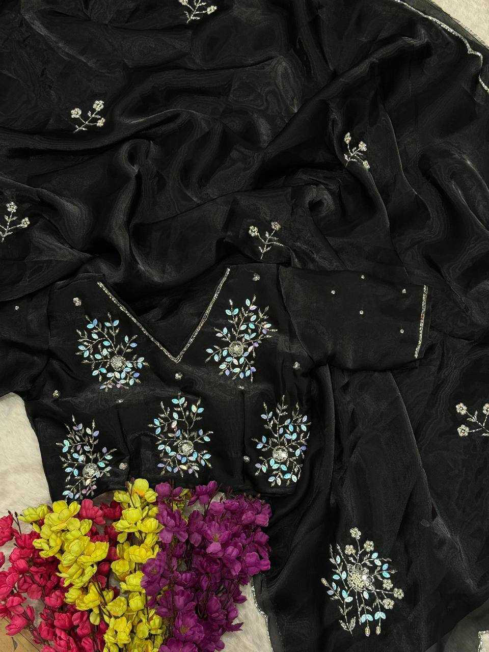 *Descriptions :* Soft Jimmy Chuu Fabric With Heavy Handwork Butta All Over Saree Moti, Sequence And Cutdana Attached With Two Layer Of Cutdana And Arco Border