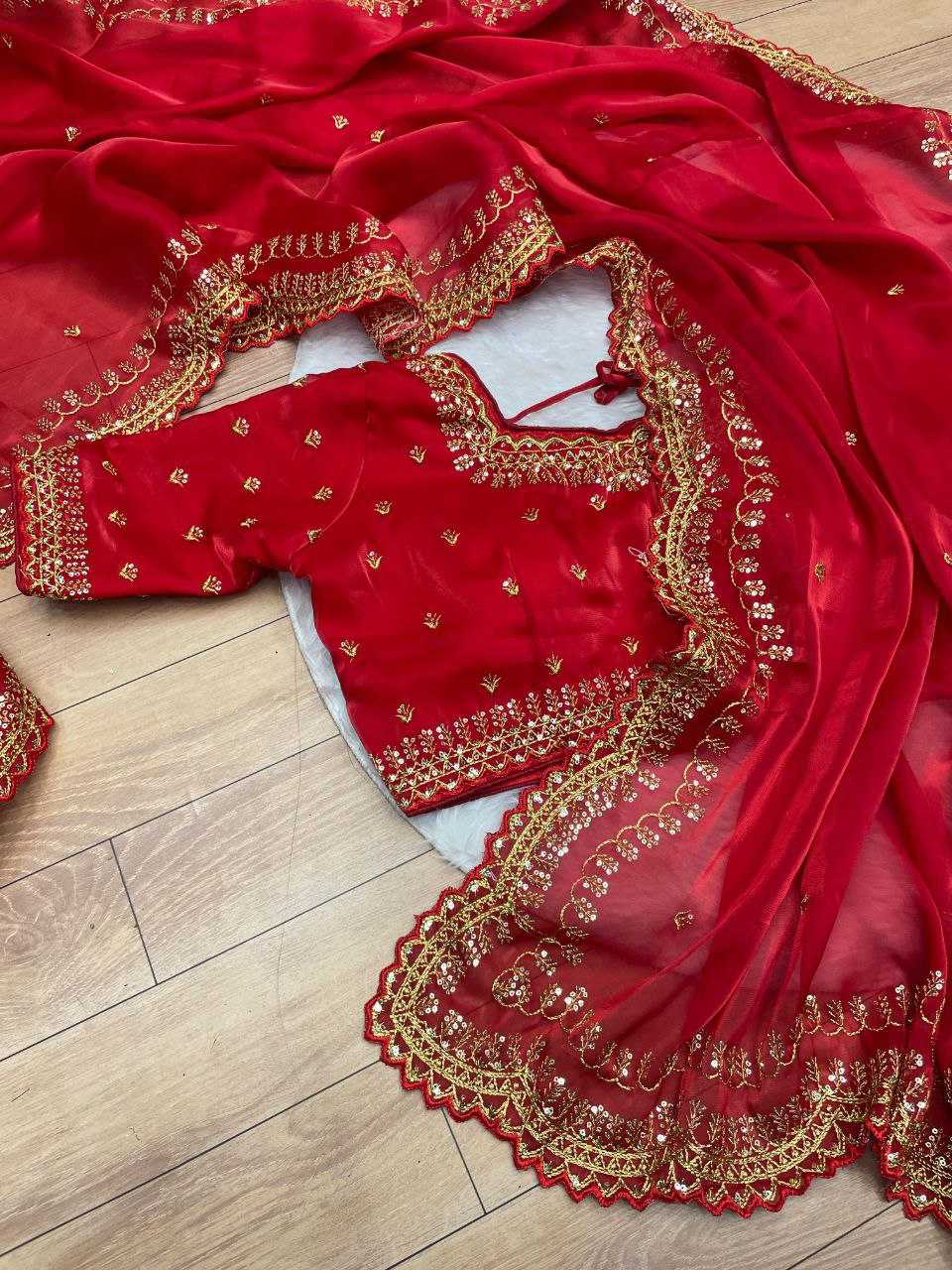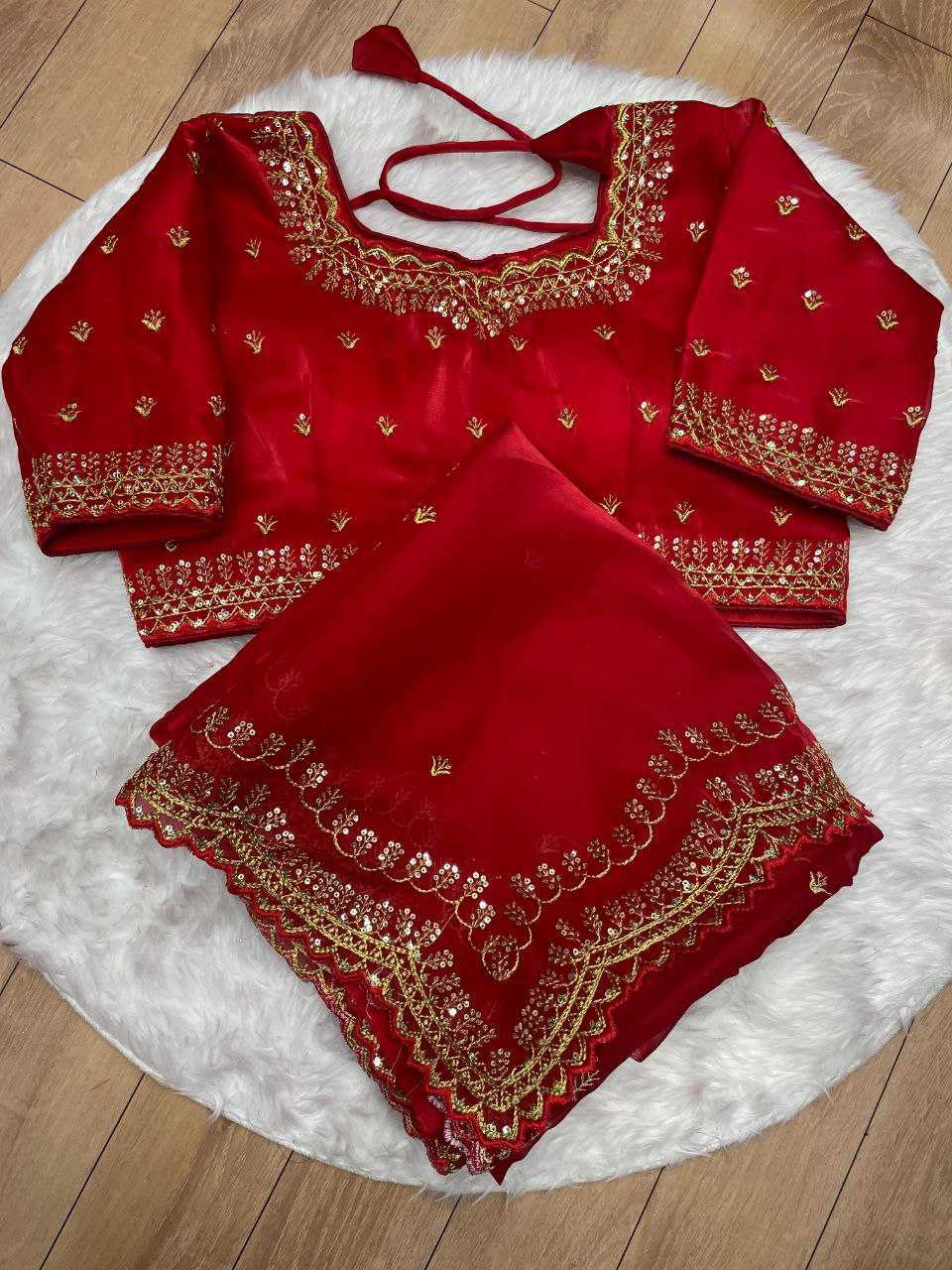 Blouse : Paired With Zimmy Chhoo Satin Fabric Fully Stitched Embroidery Work Blouse (38+Marzin upto 42)