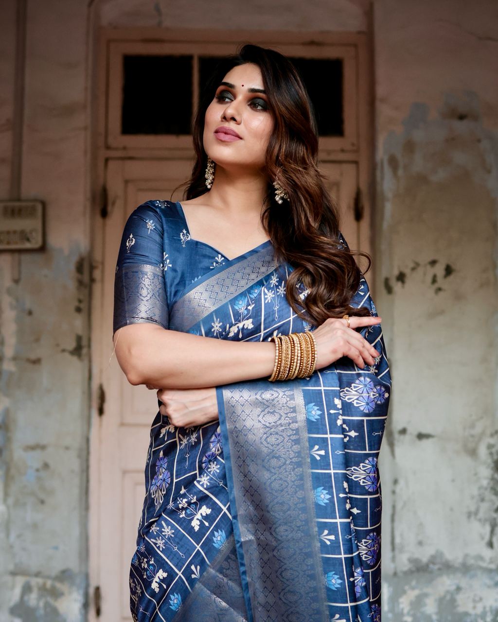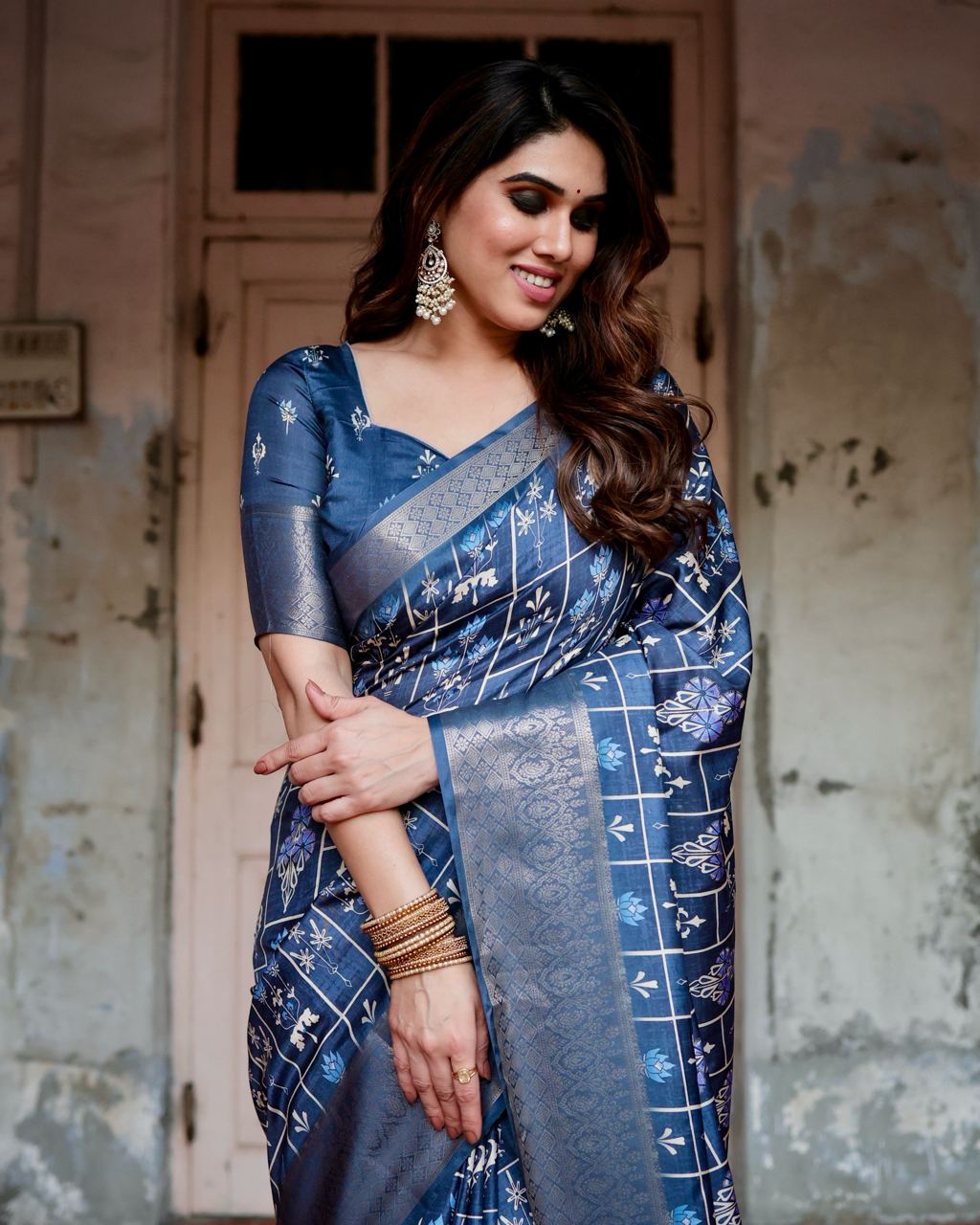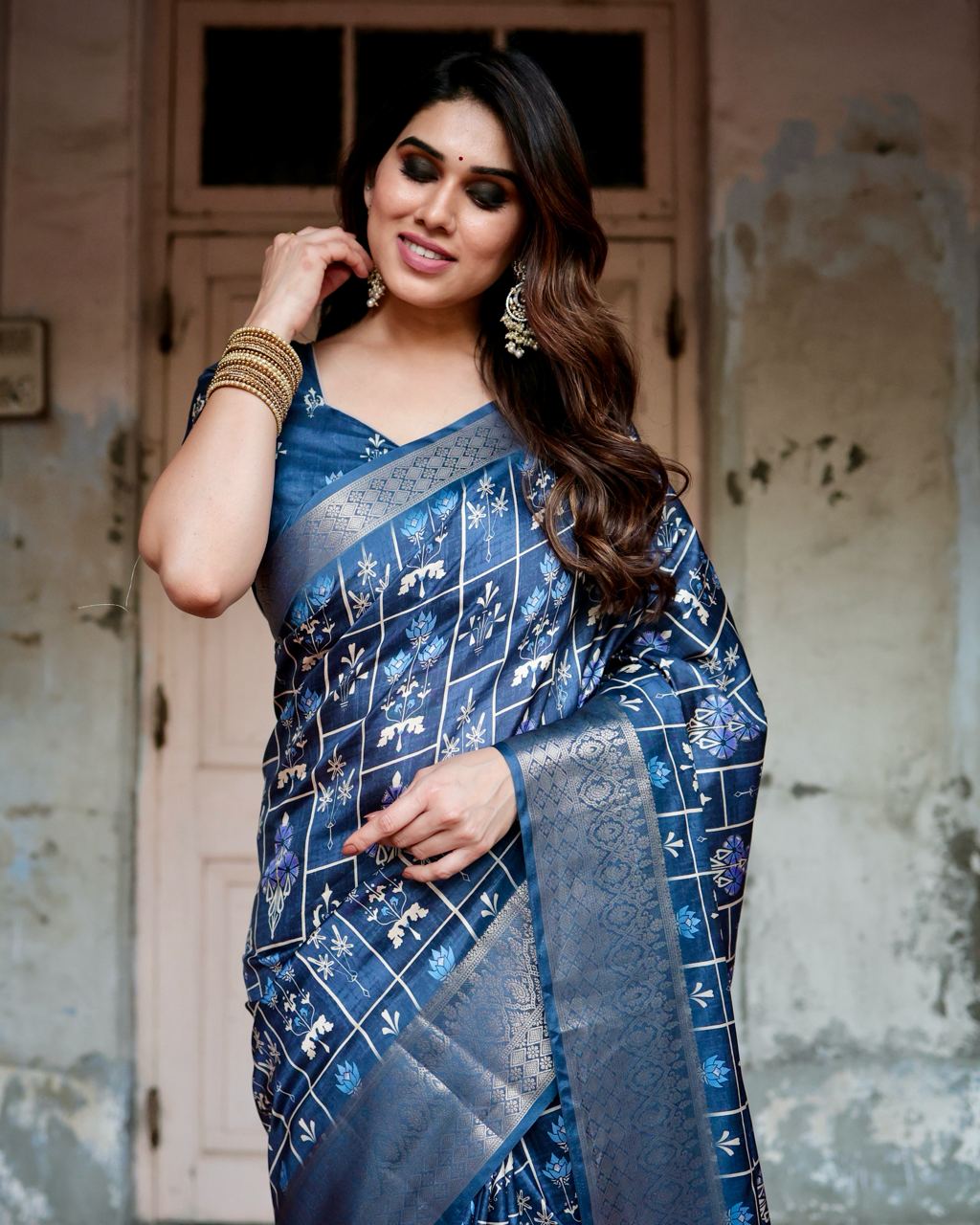 Navy Blue Color Pure Silk Digital Printed Party Wear Saree