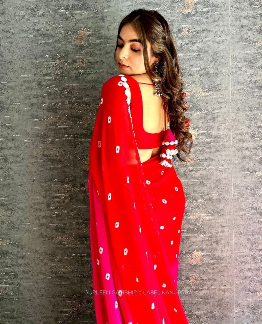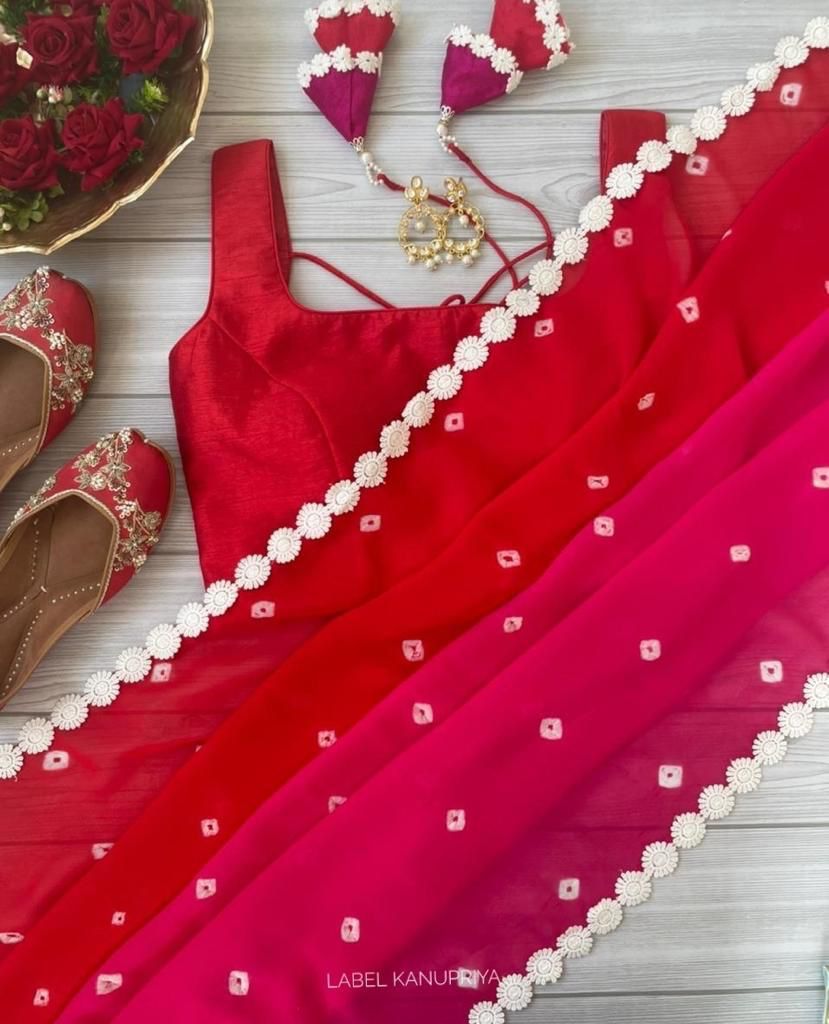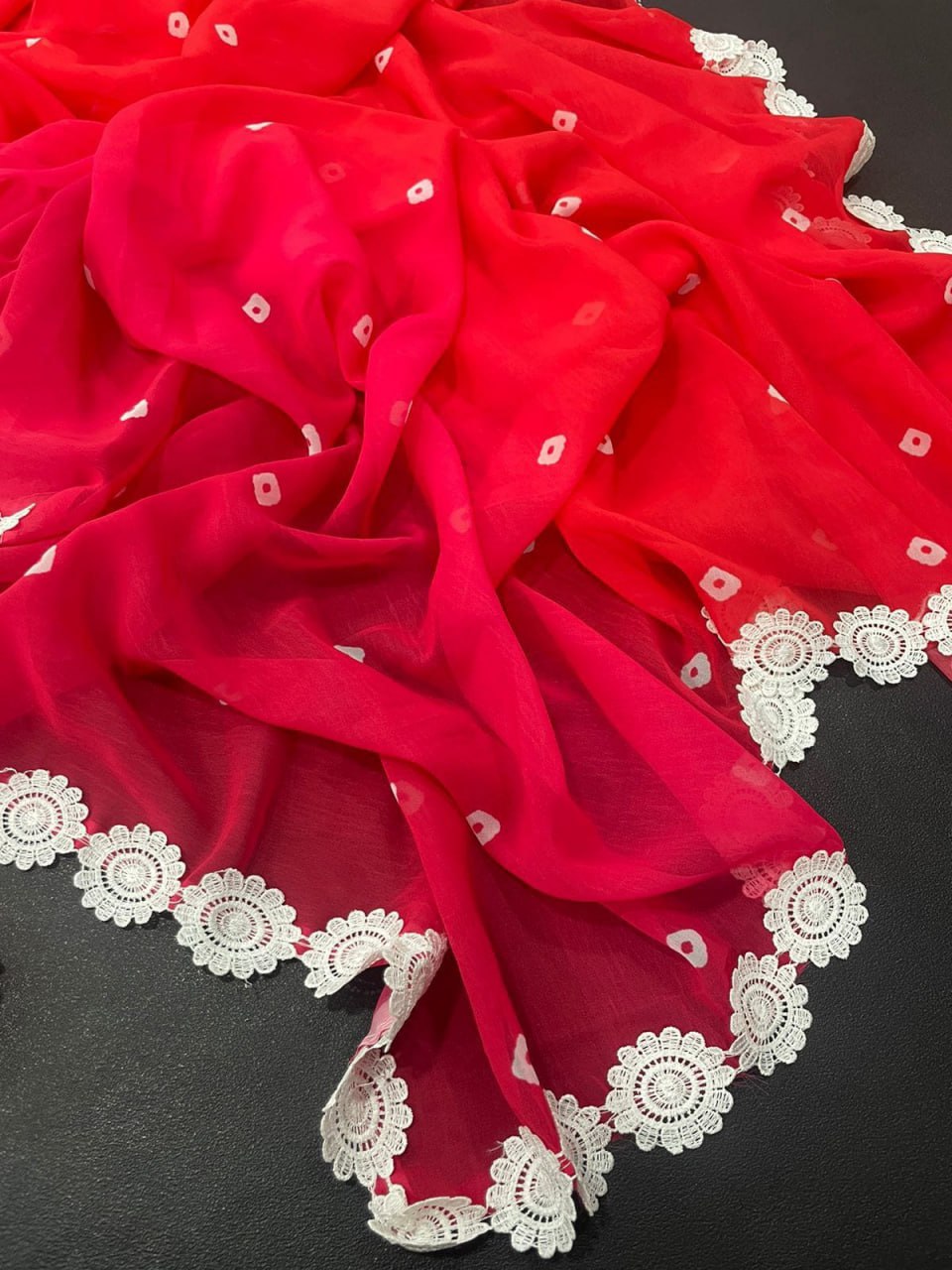 Pure Georrgte Bandhani Digital Printed And White GOP Designer Lace Border