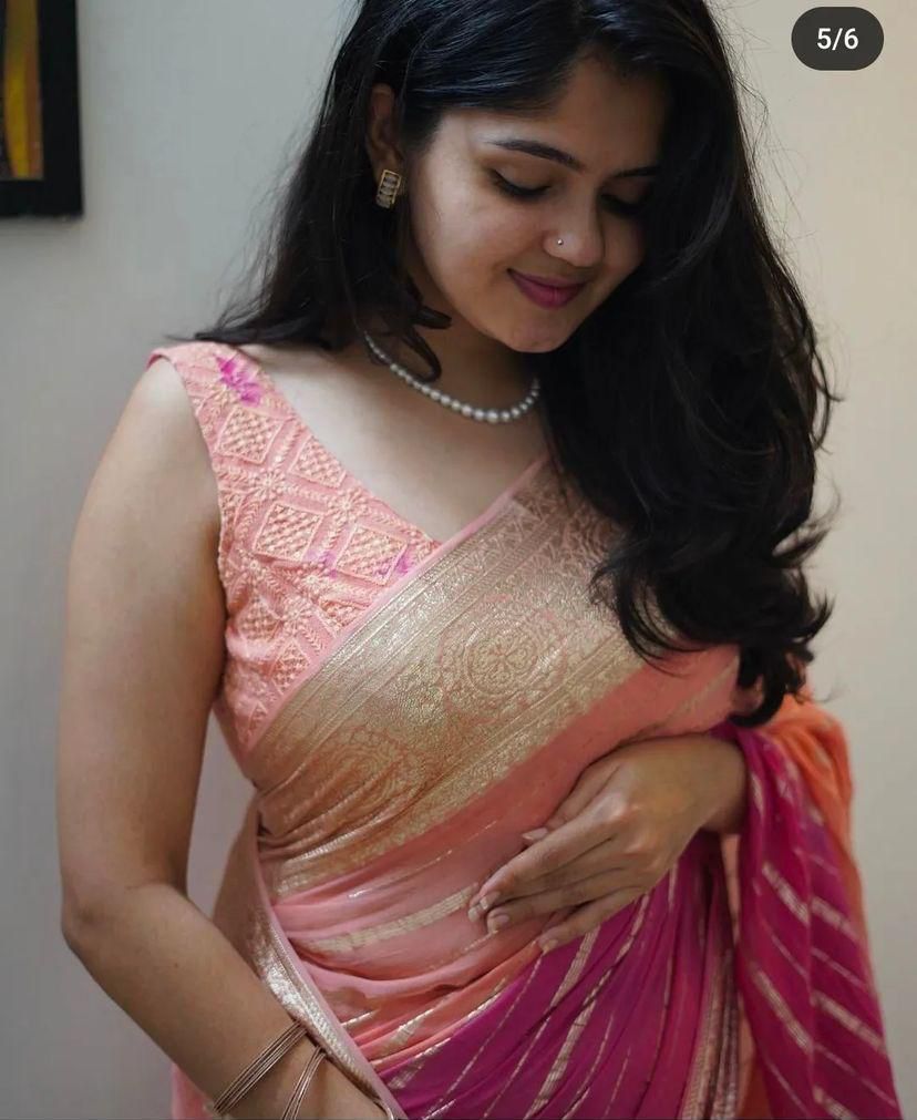 Pure Viscous Georrgte 2D Shade Tie&Die Zari Weaving And Weaves Lines