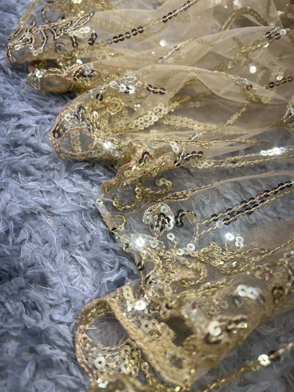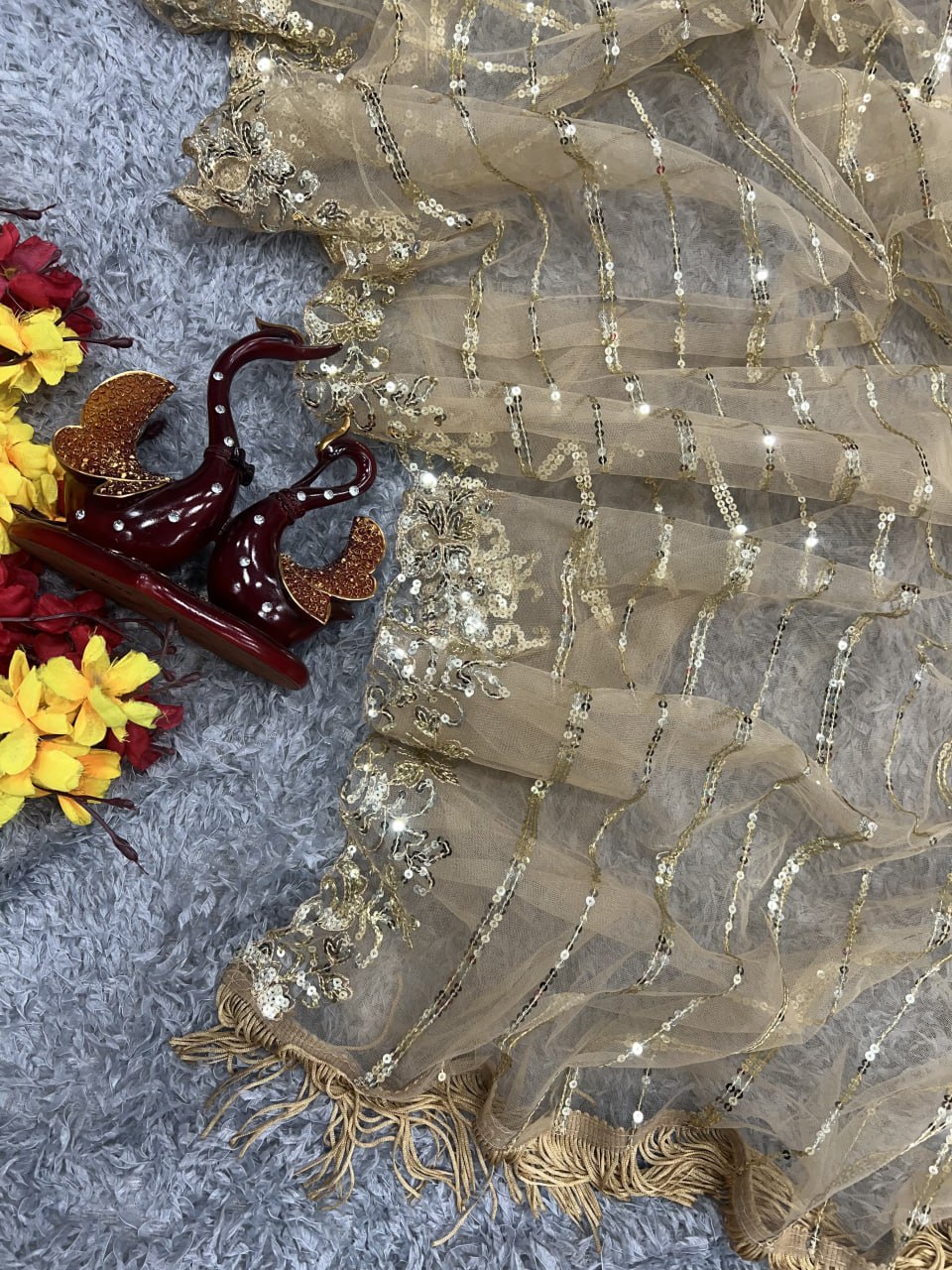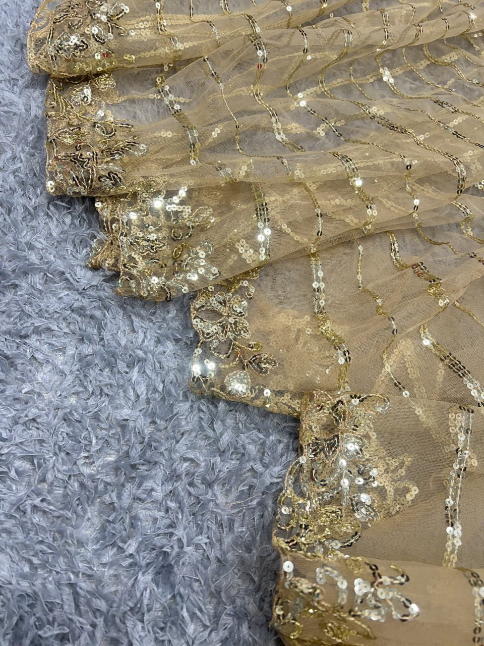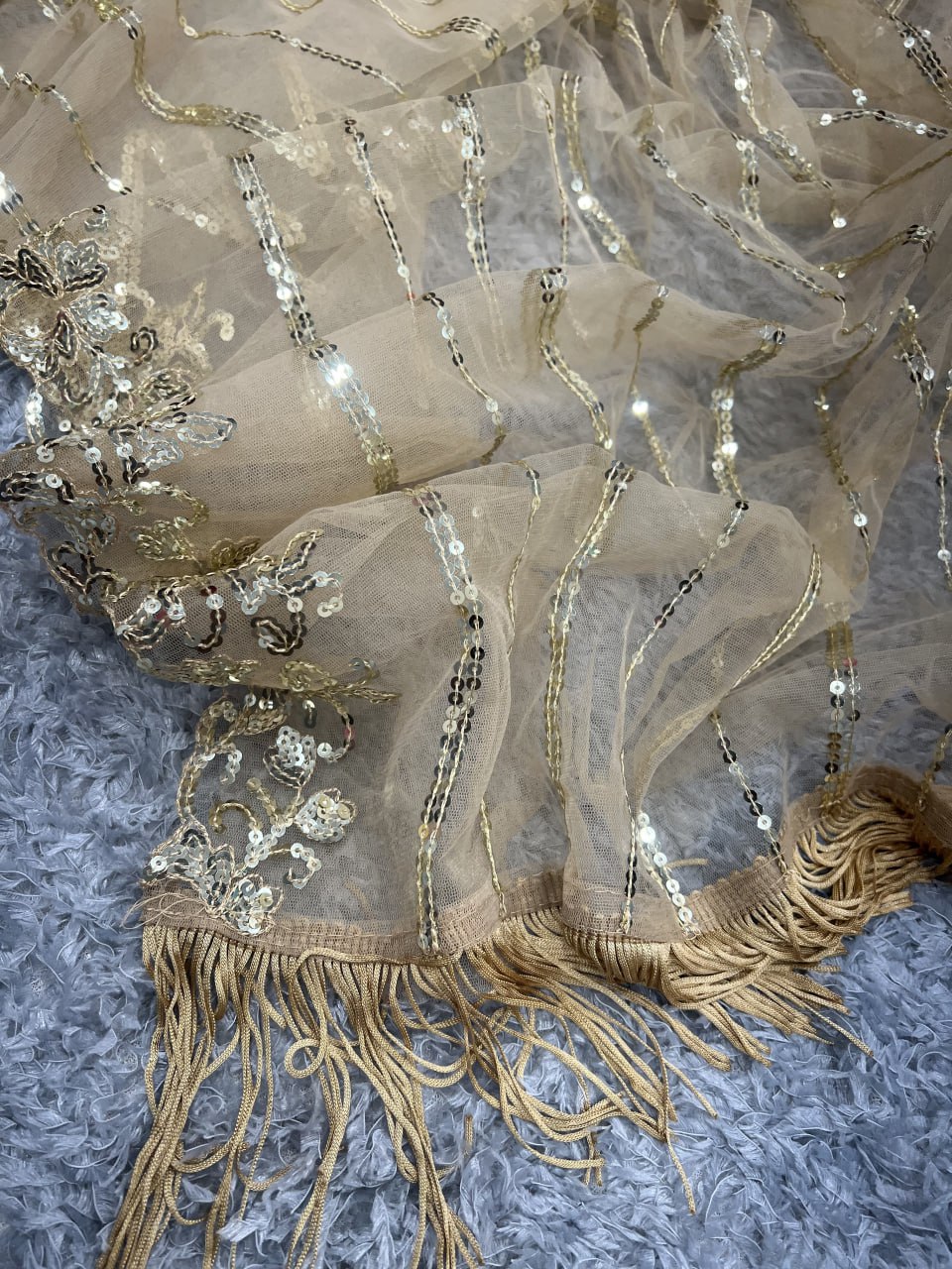 *WORK :* Beautiful sequins Embroidery Work with Cutwork in border and beautiful tussel