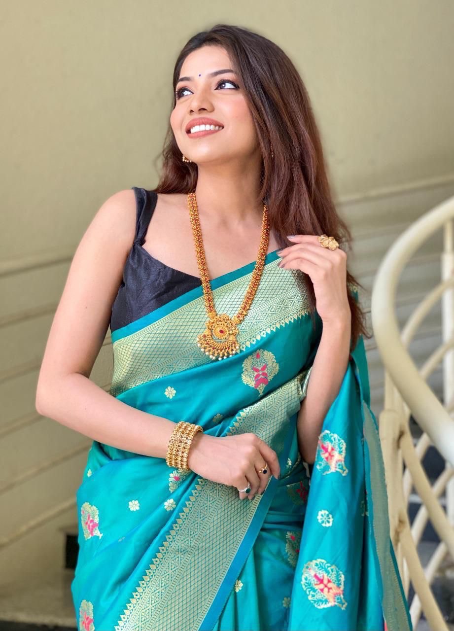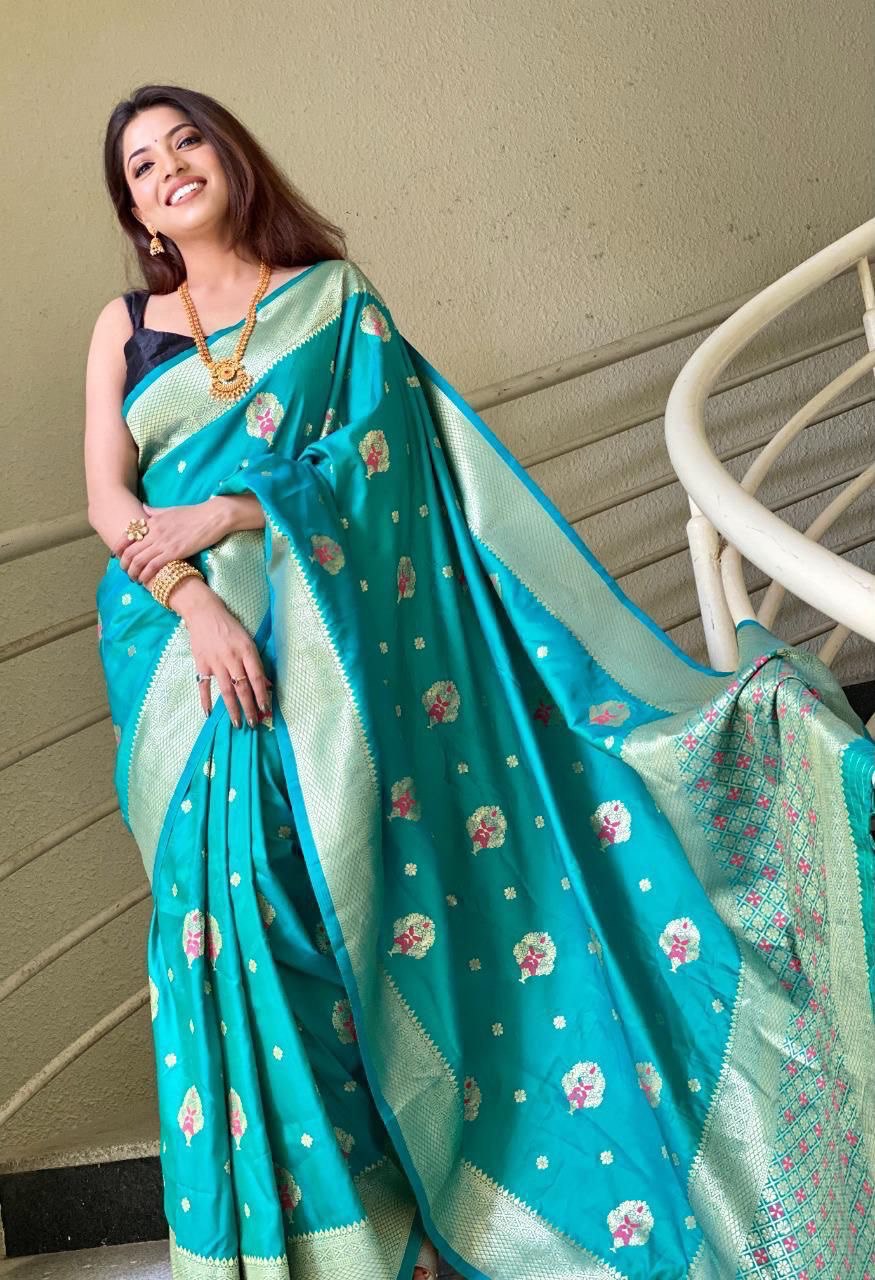 Sky Blue Banarasi Silk Saree With Zari Weaving