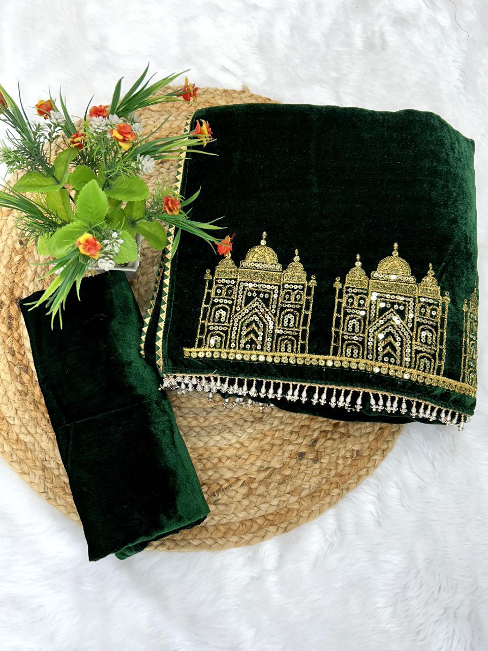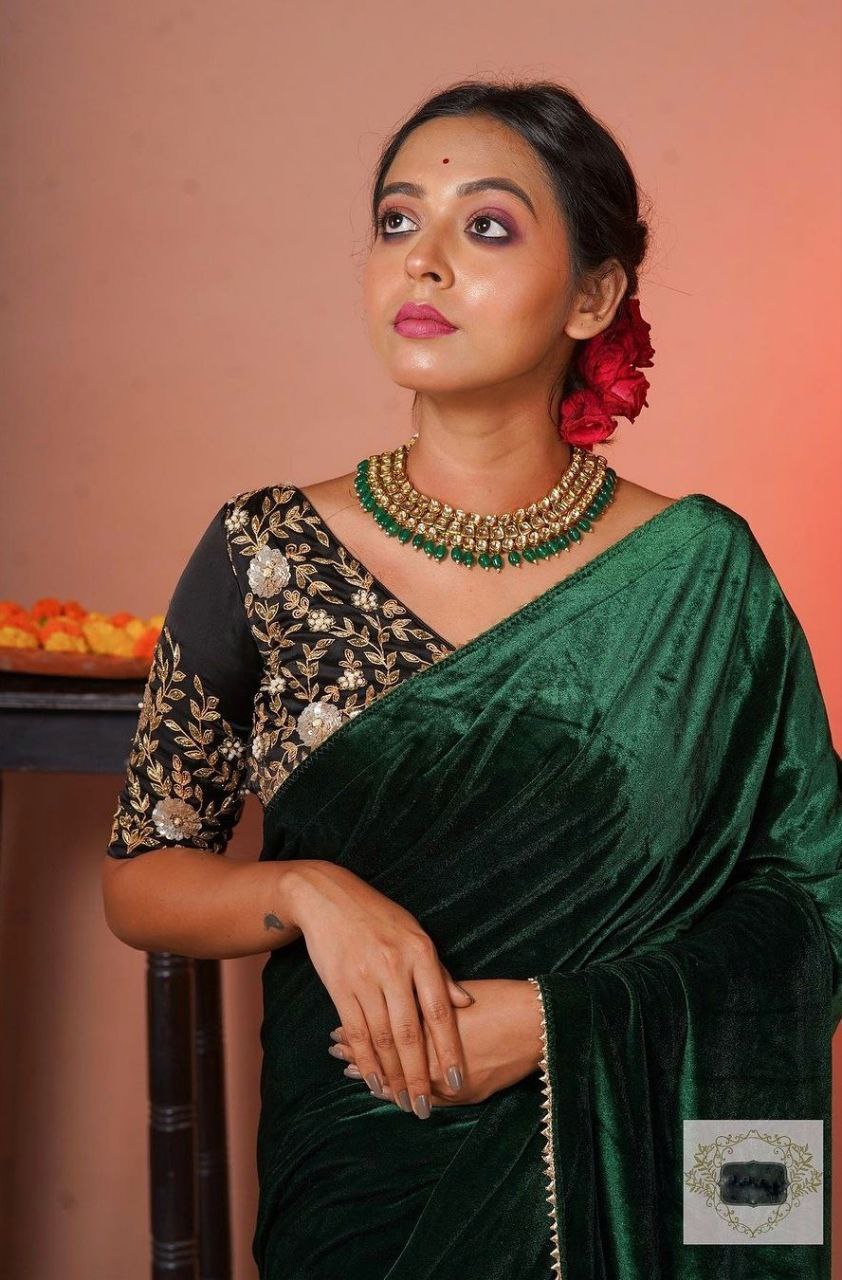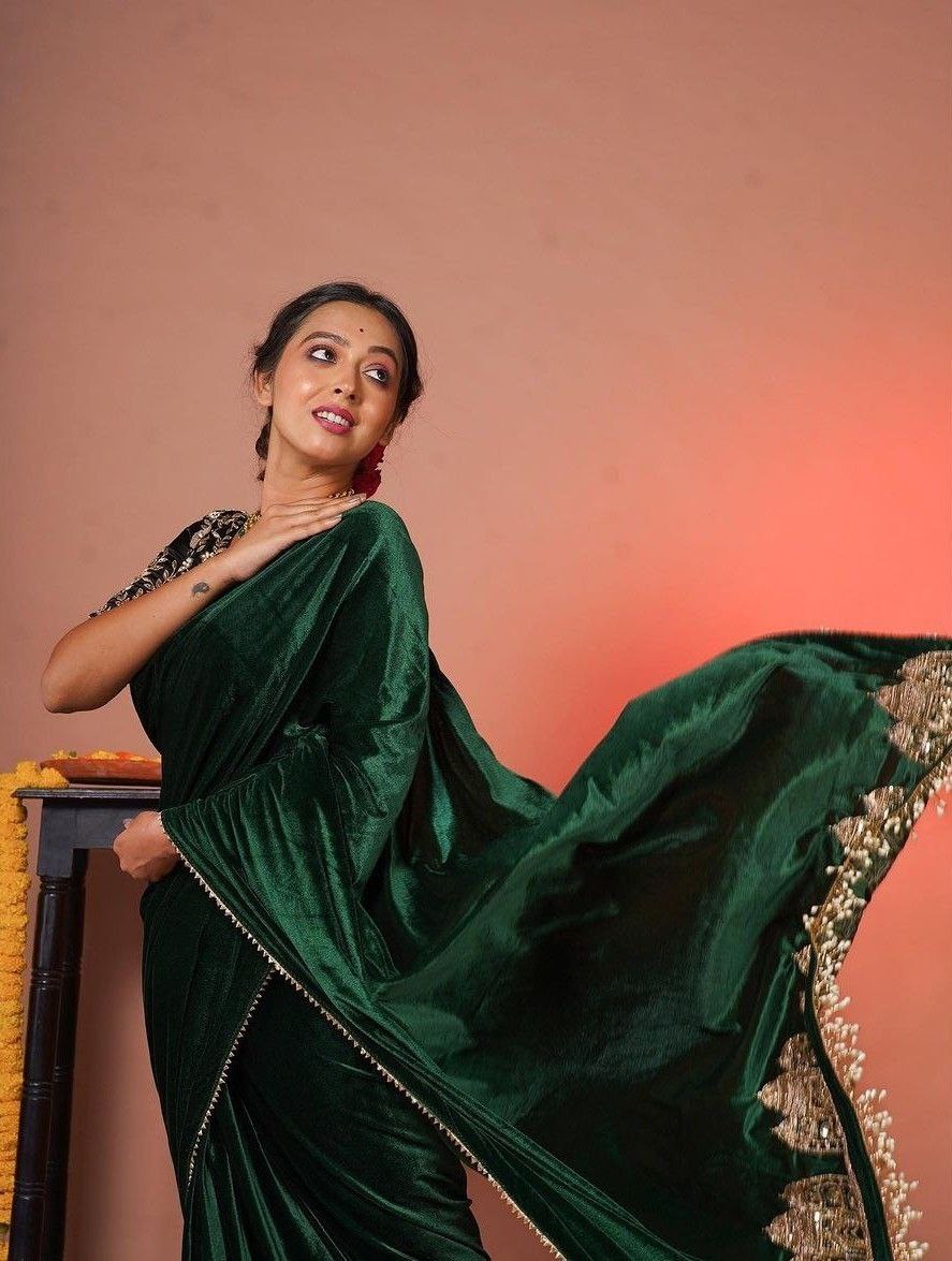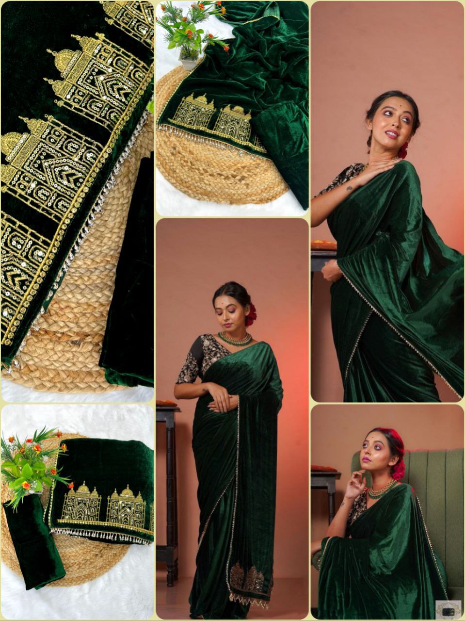 *Work*: Solid plain saree with Taj Mahal figure panel designer pallu with triangle lace border.