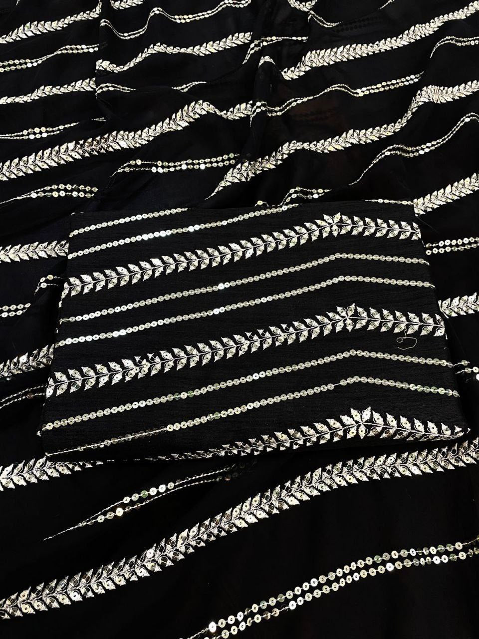 *🛑BLOUSE FABRIC-* Daimond silk (1 Mtr) With Sequins Embroidery Work